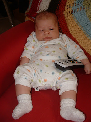 He cheers up quickly after we get a clean diaper in place. What a beautiful boy we've been blessed with!