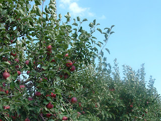 On Labor Day, we all headed to a local orchard to pick some apples. We got a fun tractor ride out to the orchard, where we spent a couple of hours picking apples and goofing around. The apples were just becoming ripe, so many of them were still tart - yummy! It was a fun day!